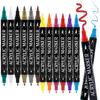 24 Colors Dual Tip Acrylic Paint Markers Pen Set with Brush Tip & Fine Tip Acrylic Marker Pens for Rock Wood Glass Fabric Canvas Paper Art Supplies