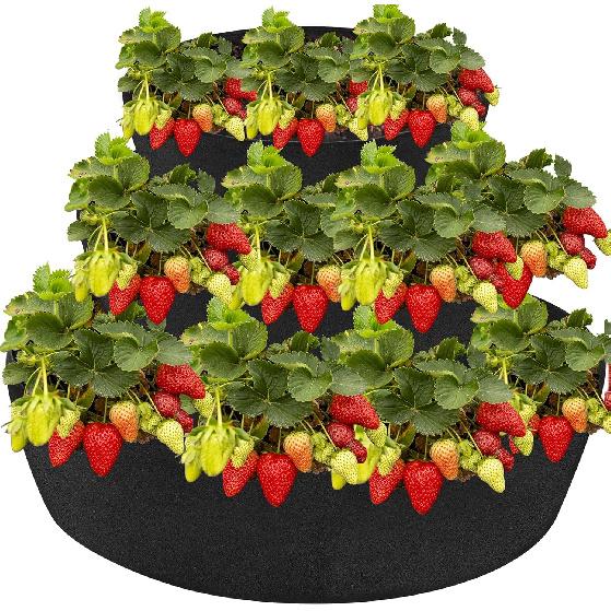 Wenfan 3 Tiered Strawberry Planter Non-Woven Fabric Raised Garden Bed Stackable Strawberry Planter Bag Felt Raised Planter Container for Growing