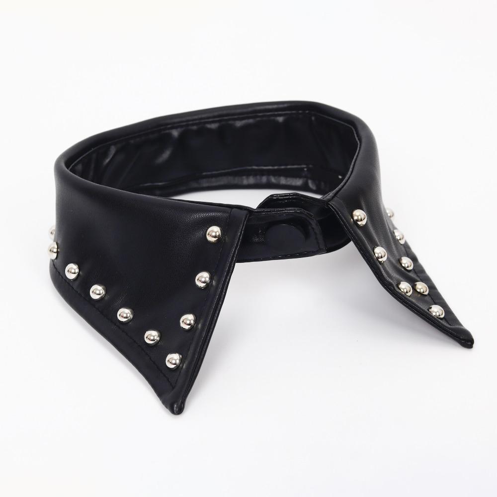 Detachable Black Leather Fake Collar Pu Punk Style Collar Cool Rivet Collar Photo Props
