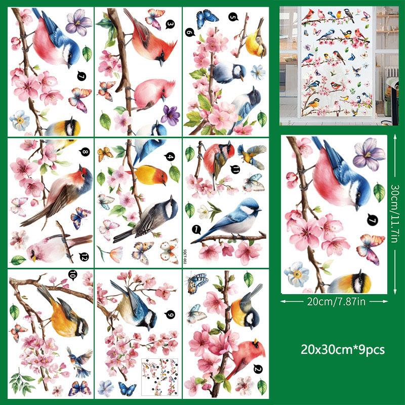 Frühlingsfensteraufkleber PVC statischer Aufkleber Kirschblüte Vogel Design für Wohnzimmer Fensterdekoration Glasaufkleber