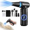 【LED Design & Mini Size】: The compressed air duster bult in with LED, double click the power button to trun on/off the LED light. It can help effectively clean dust in dark areas.And this compressed air duster is compact but delivers powerful airflow. Measuring 13.5 x 1.4 x 5.3 inches and weighing only 7.8 ounces. It comes with a dust-proof bag and a nice box, making it an excellent gift for christmas.