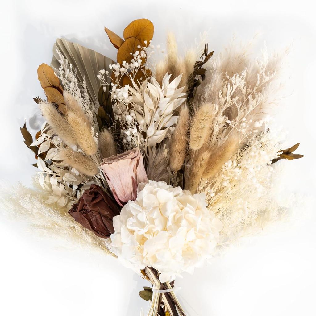 Natural Dried Flower Bouquet, Real Flower Arrangements Preserved Flowers Mix Bouquet, Varieties Flowers for Vase, Floral Arrangement for Home Wedding