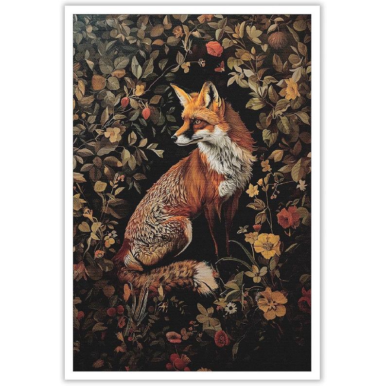 Vintage Fox Poster William Morris Wall Art Print Retro Mid Century Animal Country Floral Cottagecore Dark Academia Decor Canvas Prints Gothic Posters