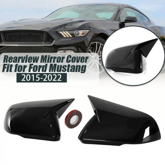 Gloss Black Horn Mirror Cover 2X For 2015~2022 Ford Mustang With LED Turn Signal