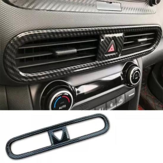 For Hyundai Kona 2018-2022 Carbon Fiber Center Air Outlet Vent Cover Trim
