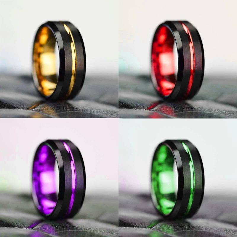 8MM Herren Edelstahlring Rot Grün Gold Farbe Rille Abgeschrägte Kante Hochzeitsverlobungsring Herren Jubiläums Schmuck