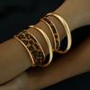 4-teiliges Armbandset mit Leopardenmuster für Damen, goldfarben, glatt, übertrieben, Metall, mehrlagig, täglicher Party-Schmuck-Accessoire