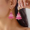 Design Sense Rosa Weihnachtsbaum Hängeohrringe für Damen Niedliche Hohl-Schneemann-Ohrringe Halskette Weihnachten Neujahr Party Geschenke