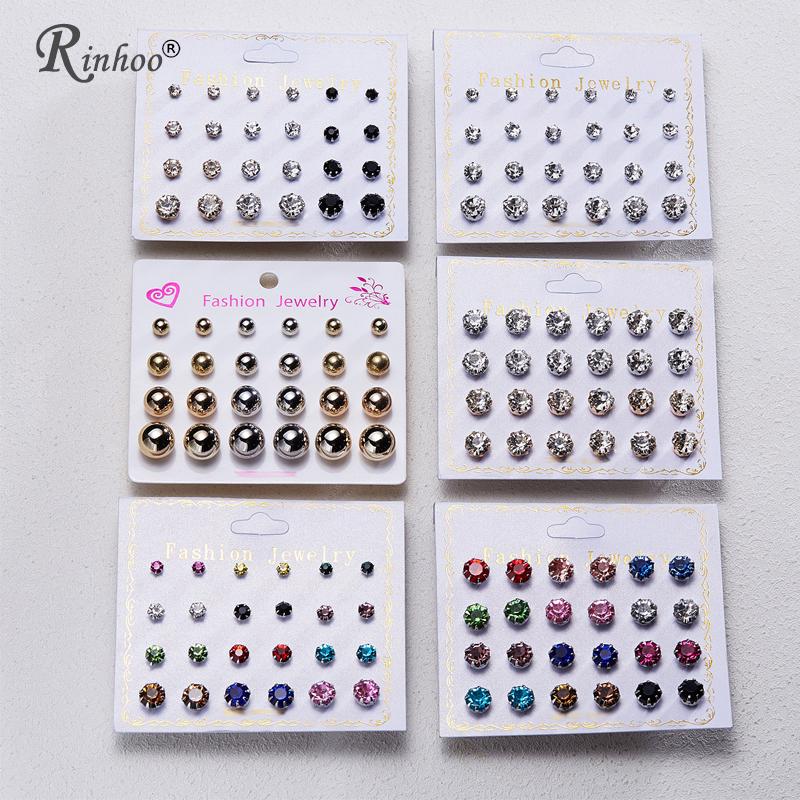 Rinhoo 12pairs Crystal Simulated Pearl Earrings Sets For Women Colorful Round Ear Stud Earrings Wedding Jewelry Box Earrings