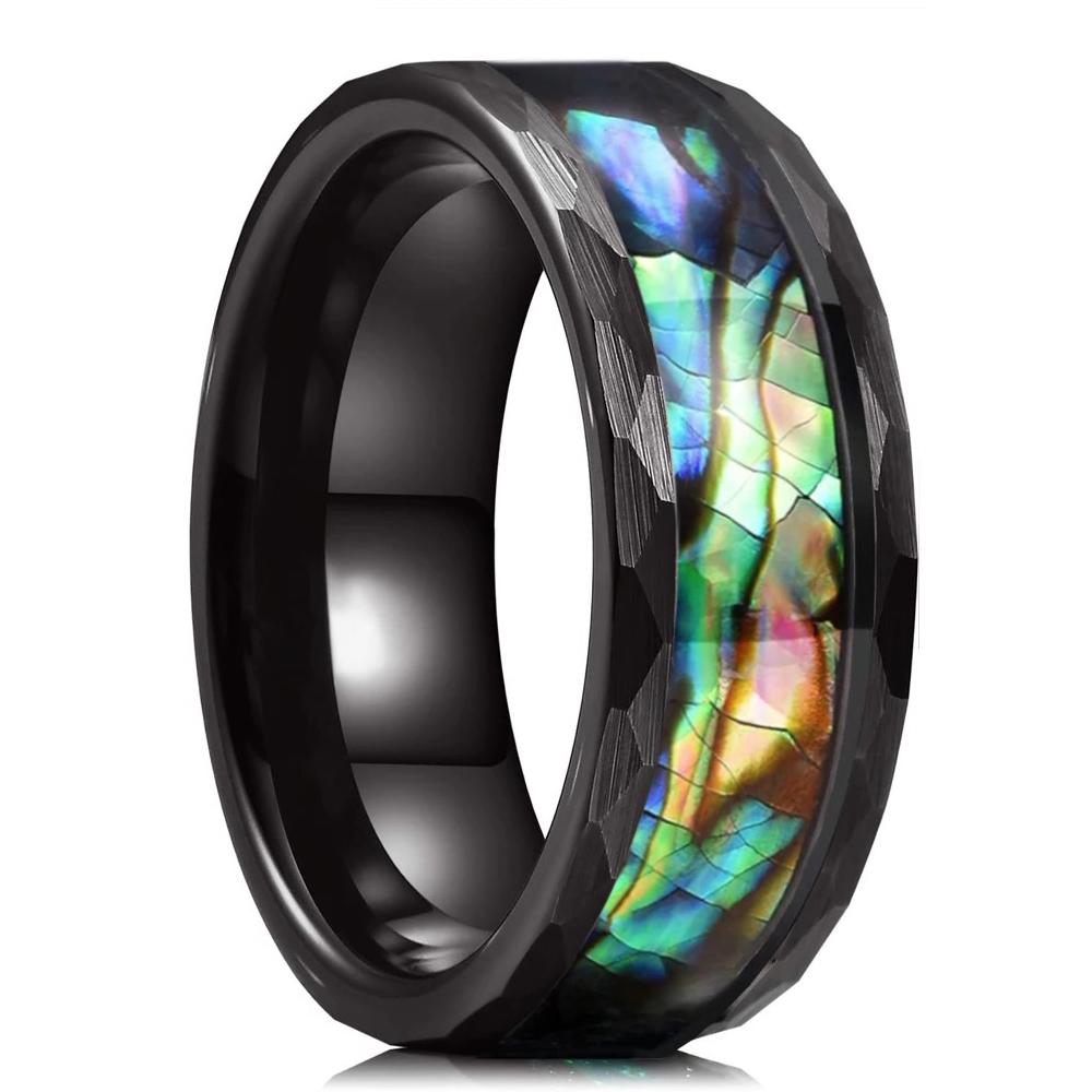 8mm Edelstahl Abalone Muschel Ringe für Männer Frauen Eingelegt Koa Holz Facettierte Kante Herren Verlobungsringe Hochzeits Schmuck