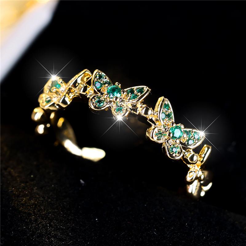 Cute Female Small Green Butterfly Adjustable Ring Vintage Yellow Gold Color Engagement Wedding Jewelry For Women