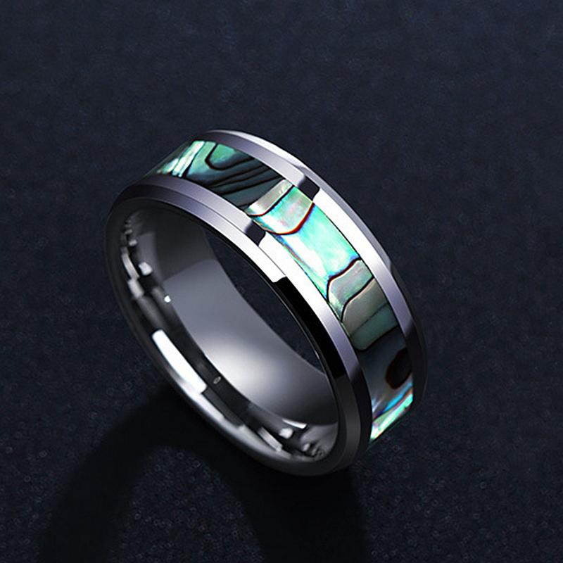 8mm Abalone Muschel Edelstahlringe Verlobungsring Regenbogen gewellte Abalone-Einlage Edelstahlring