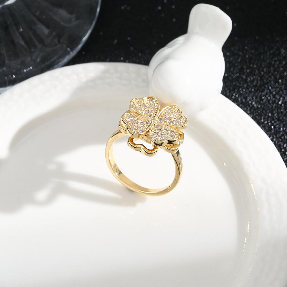 Unique Rotating Four Leaf Clover Open Ring for Women Small Stress Reliever able And Stylish Female Design Sense Accessory