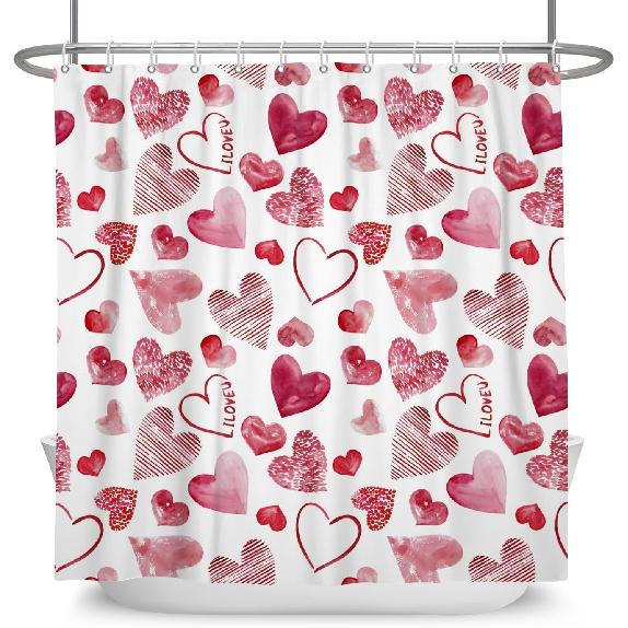 Valentines Day Shower Curtain Romantic Love Drawing Art Red Heart Shower Curtains Mother's Day Shower Curtain for Shower Decor Sets for Bathroom
