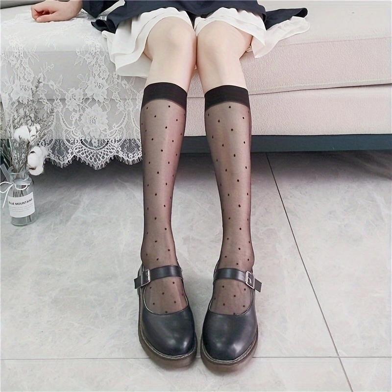 1/2/3/5Pairs Polka Dot Calf Socks, Fashion College Style Knee High Socks, Women's Stockings & Hosiery