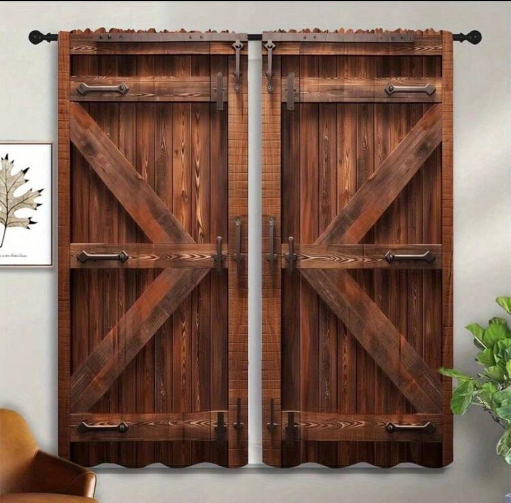 Retro wooden door pattern printed curtains, pole bag curtains, bedroom and living room, home decoration, room decoration