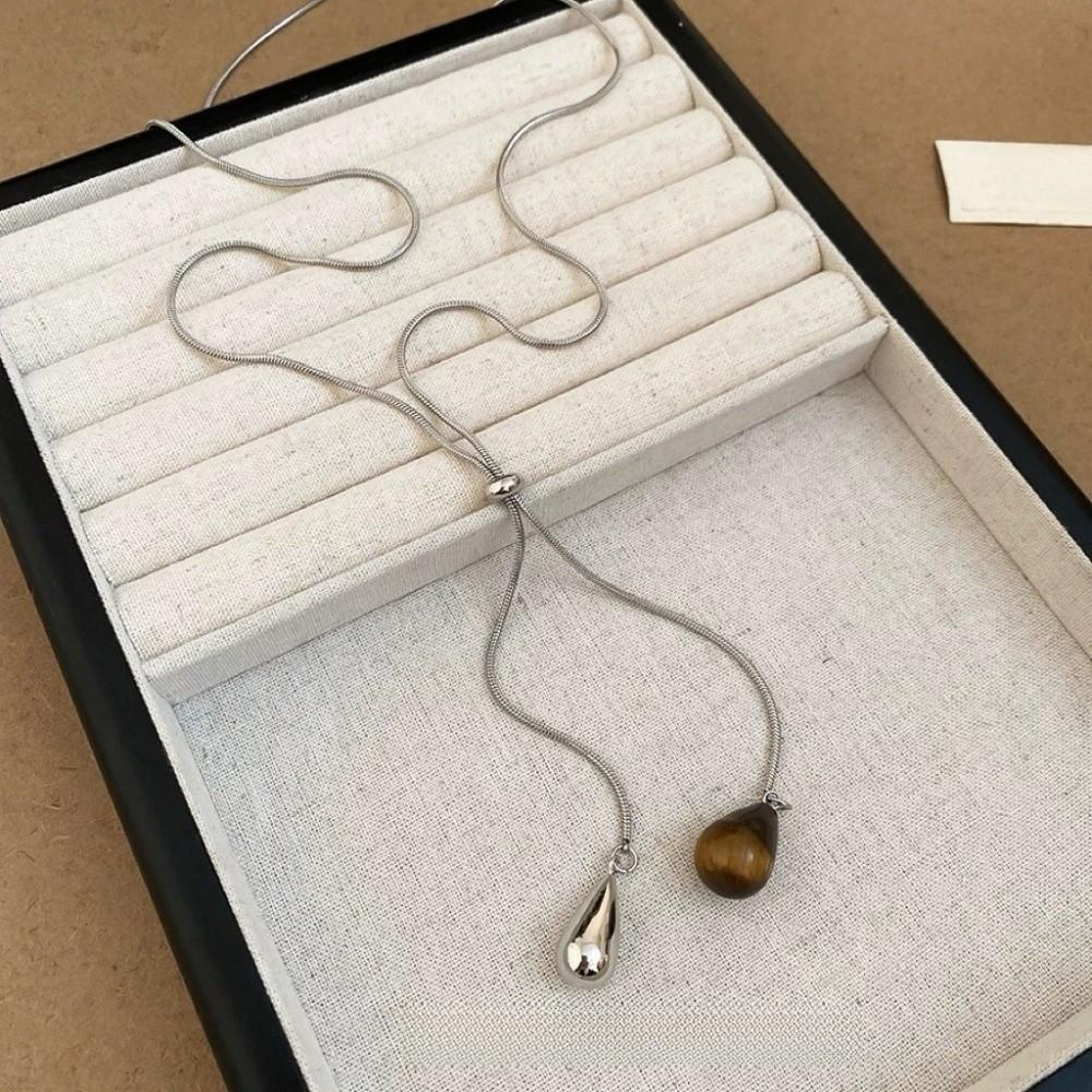 Tigerauge Stein Pulloverkette Titanstahl Anhänger Halskette Einfache Wassertropfenform Halskette