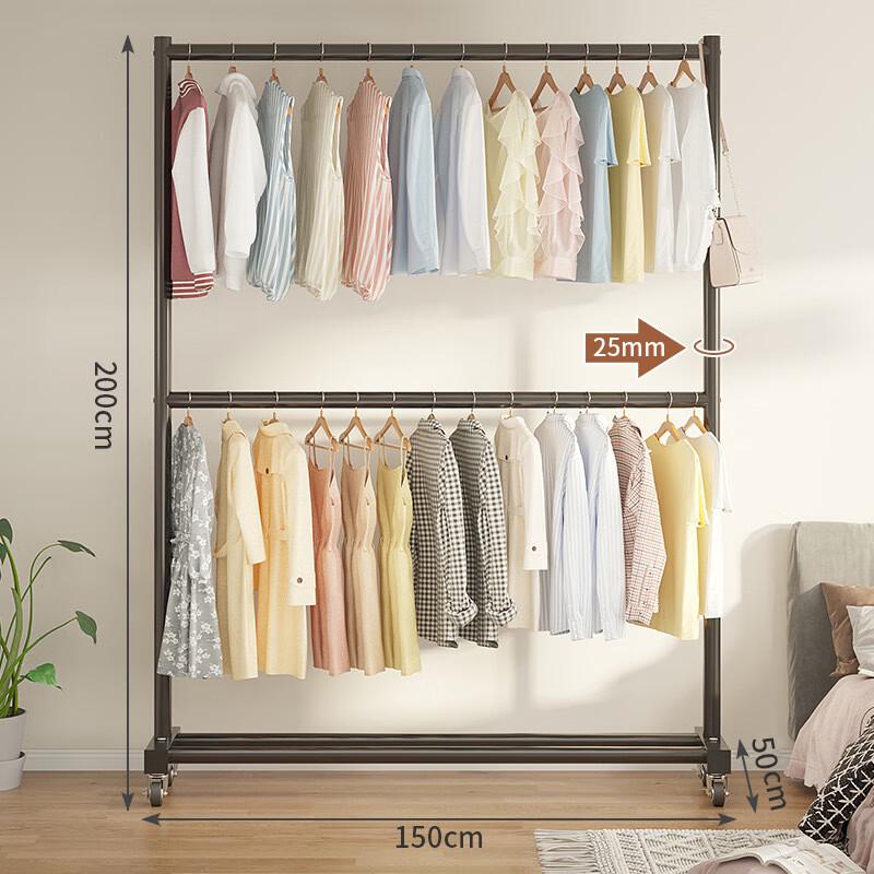 Platzsparender doppelstöckiger Kleiderständer mit Rädern
