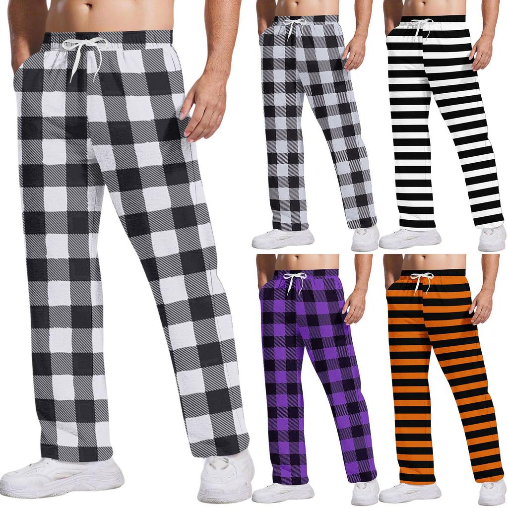 Herren Freizeithose mit Taschen | Gestreift Kariert Bedruckt, Locker Gerades Bein, Elastischer Bund mit Kordelzug Für Tägliche & Freizeitkleidung