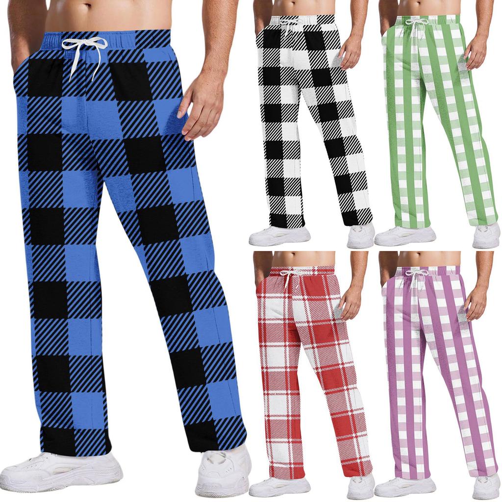 Herren Freizeithose mit Taschen Gestreift Kariert Bedruckt, Lockeres Gerades Bein, Elastischer Bund mit Kordelzug für Alltag & Freizeit