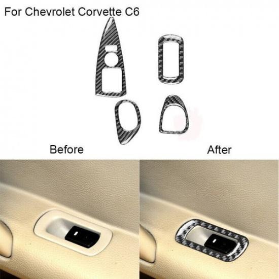 4Pcs For Chevrolet Corvette C6 Carbon Fiber Window Switch Lift Panel Cover Trim