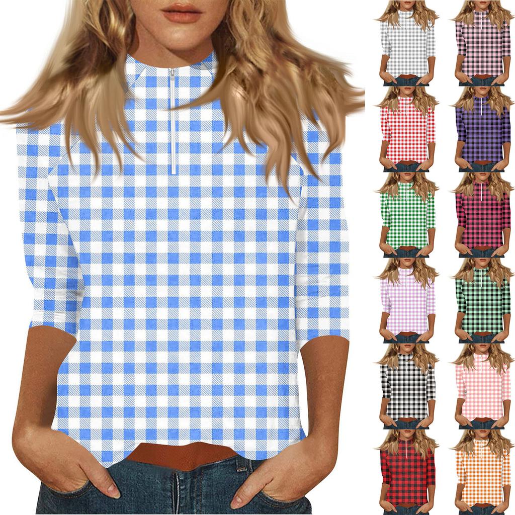 Damen Oberteil mit Stehkragen, 3/4 Ärmeln und Reißverschluss, hoch