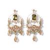 Forever More Green Stones and Pearls Enamelled Drop Earrings|Enamelled Earrings For Women|Wedding |Festive|Gift For Women