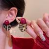 Herbst und Winter Retro Kontrastfarbe Perle Leopardenmuster Steckerohrringe Damen Einzigartiges Design Ohrringe