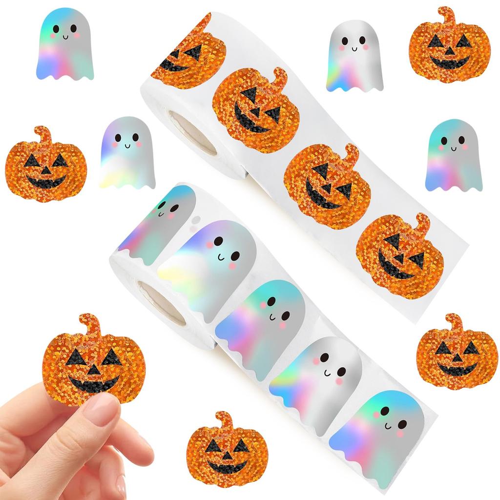 Halloween Pumpkin Stickers Roll Pumpkin Shape Decals Orange Sparkly Self-Adhesive Stickers For Halloween Party Envelope Scrapbook Decor, 500Pcs