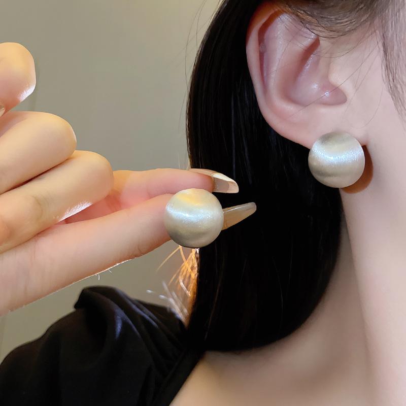 Silver Needle Retro French Brushed Ball Stud Earrings Women's Design Earrings Earrings