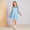 CUHK Mädchen Spitze Langarm Farbe Niedliches Prinzessinnenkleid