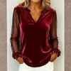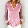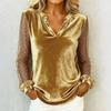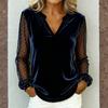 Damen Modisches Und Lässiges V-Ausschnitt Mesh Gold Samt Patchwork Langarm T-Shirt Top