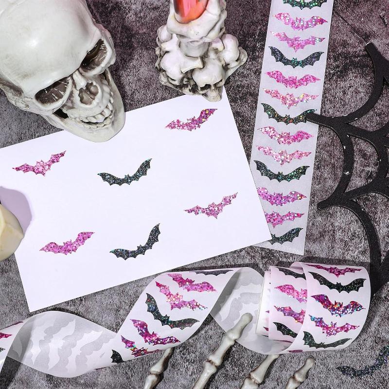 500Pcs/roll Laser Black Bat Waterproof Glitter Self-Adhesive Decals Halloween Bat Stickers For Party Scrap DIY Accessories