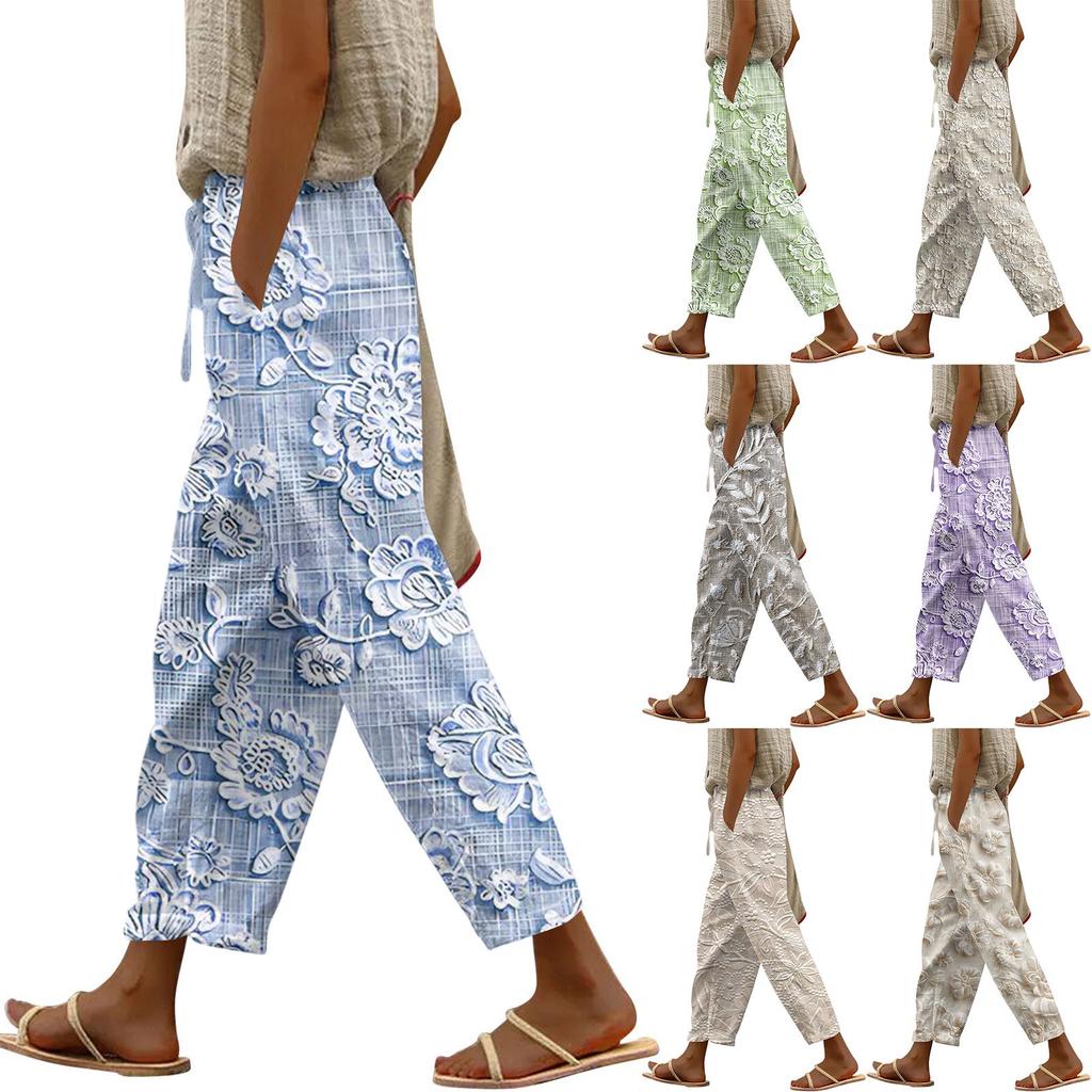 Damen Modische Hose mit Blumenmuster, Kordelzugtaschen und elastischem Bund für Freizeit