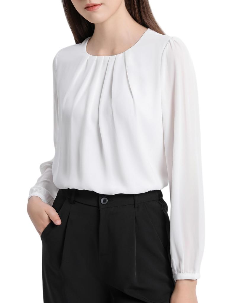 FRÜHLINGSSISON Langarm Chiffonbluse mit Falten und gefüttert Perfekt für und Perfekt für eine schlankmachende Größe M Damen Oberteil, Büro, Business, Pendeln,