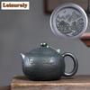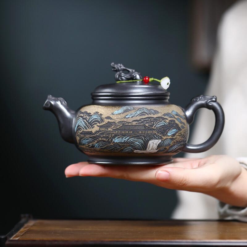 410ml Retro Yixing Lila Ton Teekannen Handgefertigter Landschaftstopf Rohmaterial Stein Gelber Schlamm Kessel Mit Sieb Chinesisches Zisha Teegeschirr
