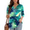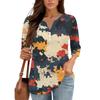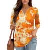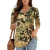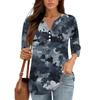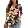 Damen V-Ausschnitt Freizeit Dreiviertelarm Knopf-Detail Top mit Blumenmuster
