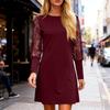 Women's Fashionable Casual Round Neck Long,Sleeve Printed Lace,Trimmed Dress