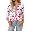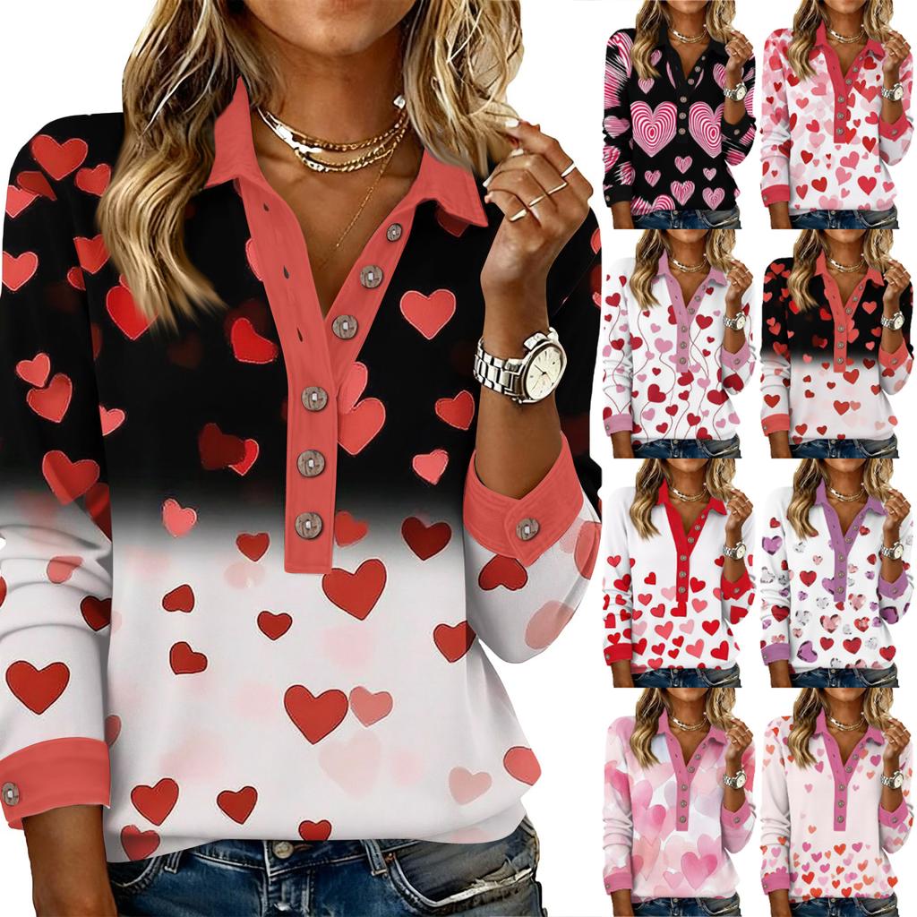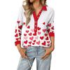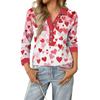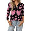 Damen Retro Street Lässiger V-Ausschnitt Langarm Knopf Valentinstag Herz Pullover Top