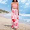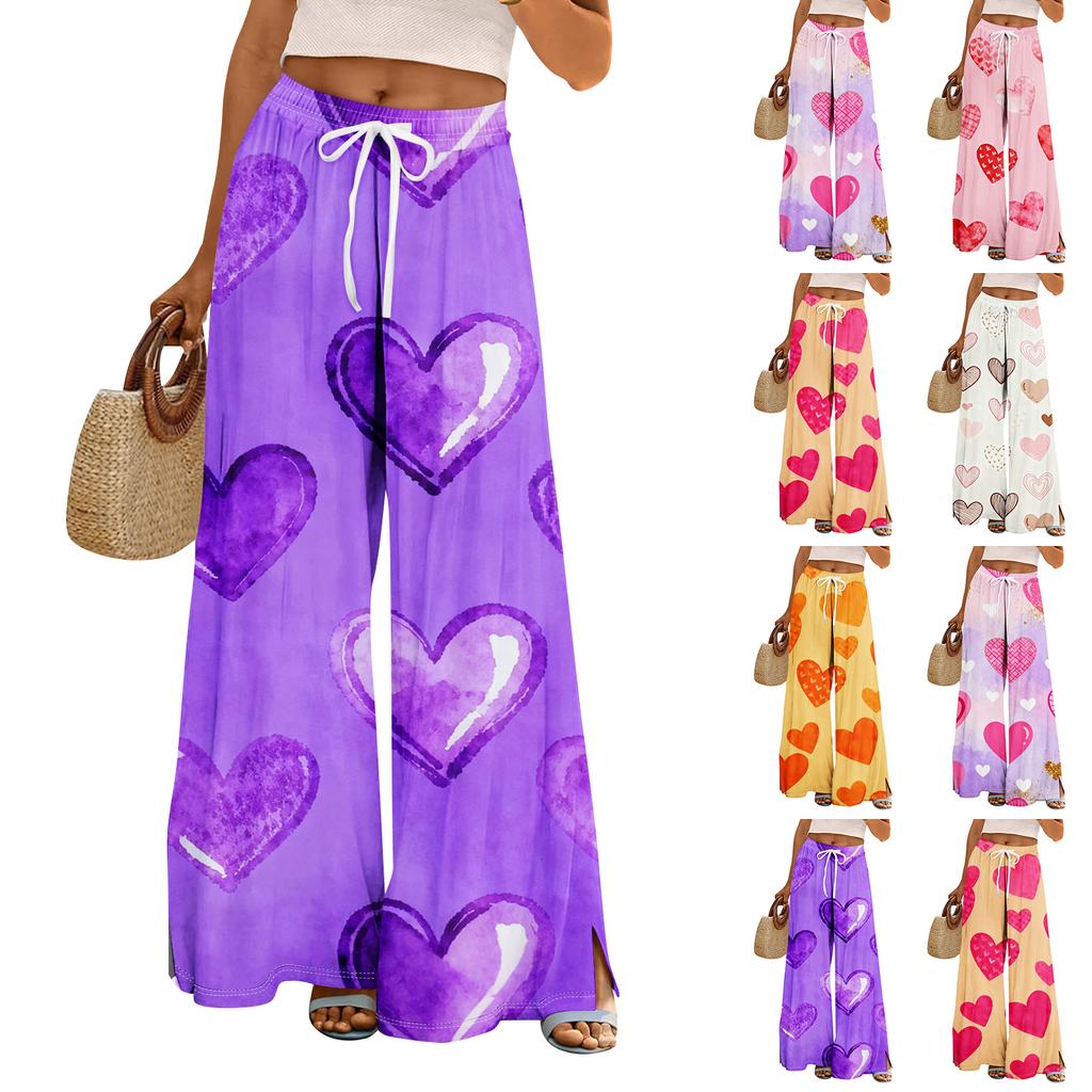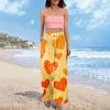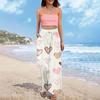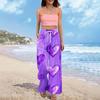 Damen Sommer Boho Palazzo Hose Hohe Taille Weites Bein Druck Freizeithose Mit Taschen