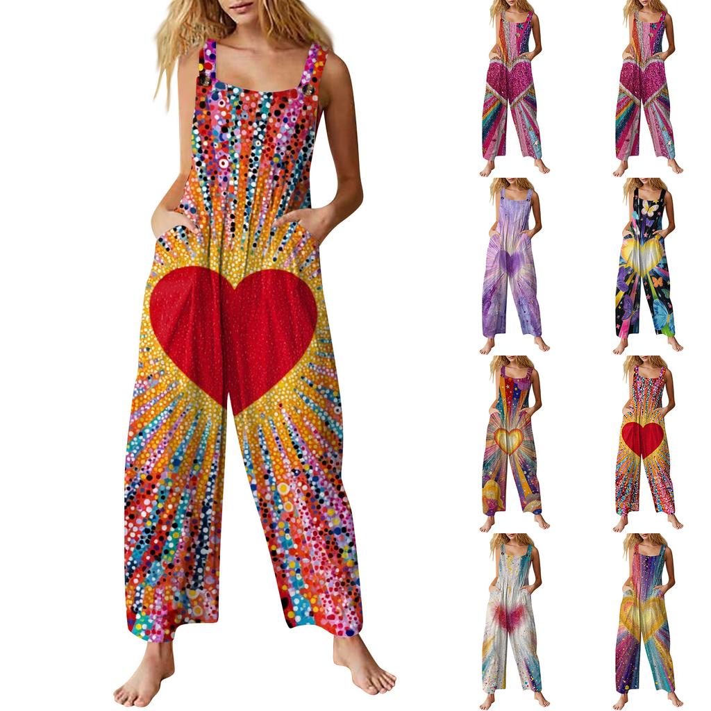 Damen Casual Ärmelloser Valentinstag Bedruckter Jumpsuit