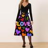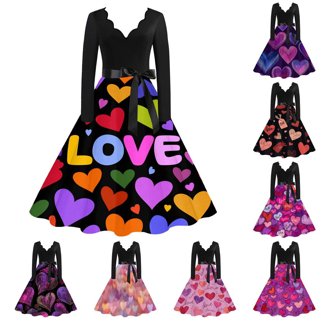 Damen Casual Mode V-Ausschnitt Valentinstag Print Retro Kleid