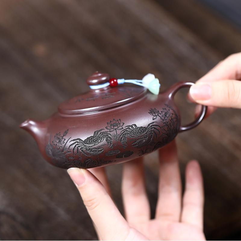 150ml Yixing Lila Ton Teekannen Handgefertigt Han jiang Kanne Rohmaterial Stein rot Lehm Teekocher mit Sieb Zisha Teegeschirr