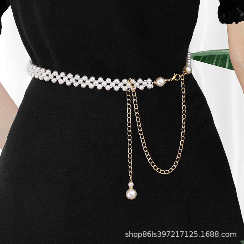 Women's Pearl Belt, Diamond,Studded Elastic Waist Chain