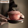 125ml Saucenglasur Kürbis Gaiwan Japanische Teeterrine Haushaltsteeschale mit Deckel Set Teezubereiter Deckelschale Teegeschirr Ornamente Handwerk