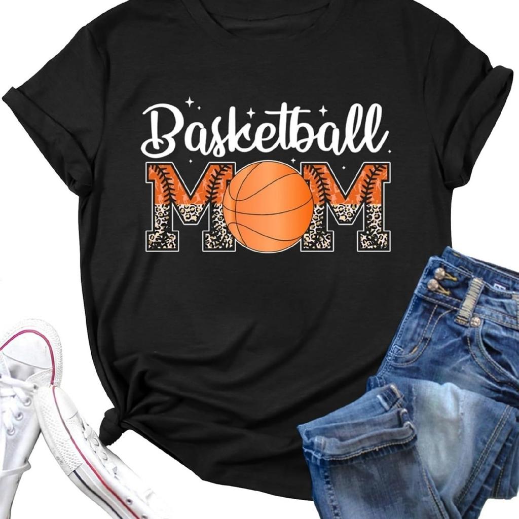 Basketball Mom Shirts for Women Game Day Print T-Shirt Basketball Sport Lovers Casual Short Sleeve Tee Tops