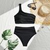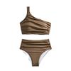 2026 Solid Color Pleated High Waist Shoulder Split Swimsuit