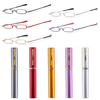 Women Spring Hinged Readers Slim Reading Glasses Slim Pen Reading Glasses with Pen Clip Tube Case