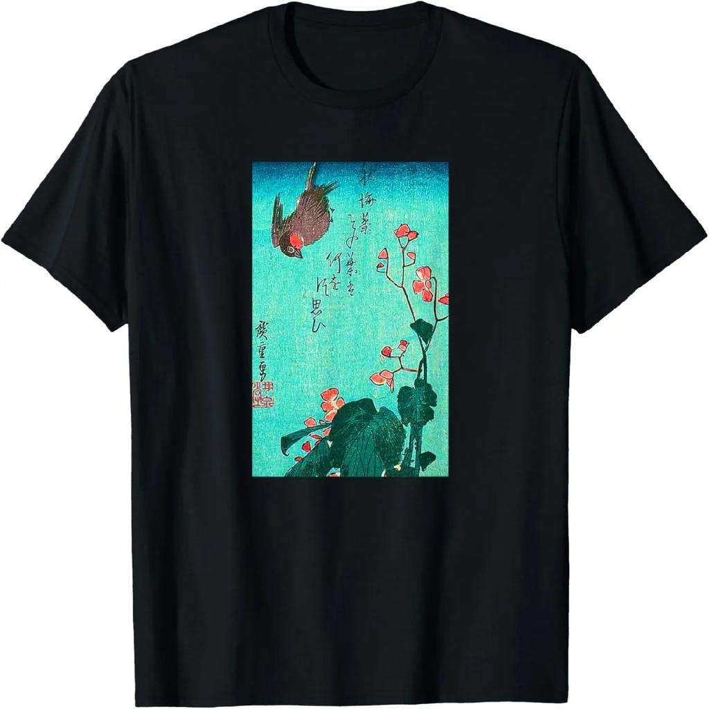Japanischer Vogel und Blumen Antikes Japanisches Kunstdesign T-Shirt