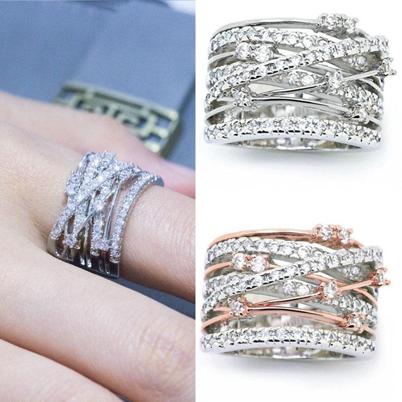 Luxury Ladies Hollow Out Twist Intertwine Line Crystal Rhinestone Zircon Ring for Women Party Wedding Engagement